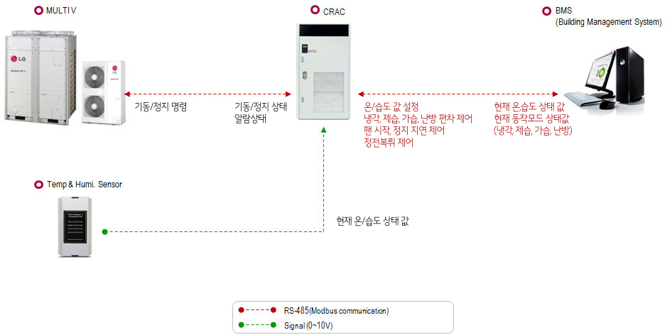 RS-485 Communicator 를 통한 BMS 에서의 CRAC 원격제어 가능