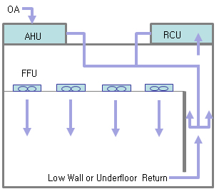 클린룸 천장에 HEPA 또는 ULPA 필터가 설치되고 리턴덕트 또는 공기순환유닛 내부에 가압용 축류팬이 설치되어 클린룸으로 청정한 공기를 밀어 넣어주는 방식이다.