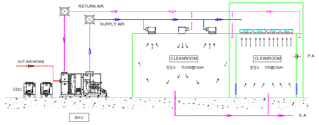 주요 적용처 청정공간이 필요한 공정 전반 일부 특수존 일반적인 IC공장 수술실, 무균병실